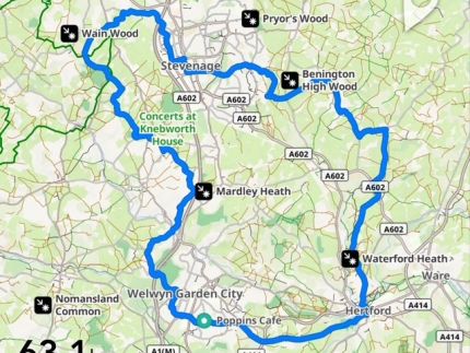 With the Hertfordshire Greenways 120km Audax just a week away, we will ride the 63km (40 mile) Herts Greenways Lite route which has been shared by the organiser to help participants prepare for the longer ride. With sections on the paved Cole Greenway and an unpaved (but smooth) part of the Ayot Greenway, it gives a feel for what the greenways are like.