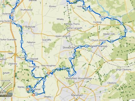 Trails include, Clowne Greenway, Stockley Trail, Rowthorne trail, Teversall trail, Skegby trail, Archeological trail, and more. Plus a bit of woodland trails, and a couple of old pit parklands. This is a trail ride