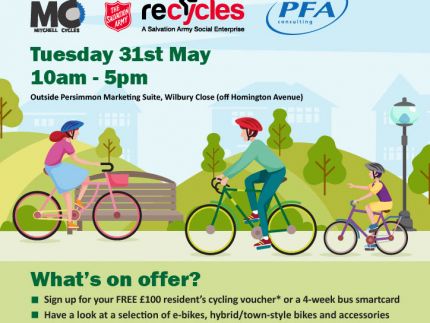 Starting from - Outside the Persimmon Sales Offices on Wilbury Close, Marlborough Rd, Swindon SN3 6AB Swindon (Just off Homington Avenue). Why not pick up a free cycle map, get your bike safety checked and security marked at the free cycle promotion event whilst you're there?