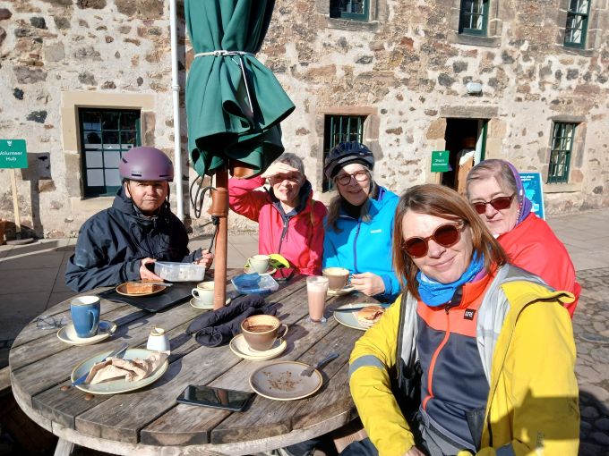 We will make brief stops at various points along the way to take in the views, and we will stop for refreshments in Newhailes house and gardens. As we will be cycling over lunch time, you may wish to either bring some lunch with you or buy something (e.g. soup, sandwich) at the Stables café. Hopefully the weather will be good enough for us to sit at the picnic tables in the enclosed courtyard.