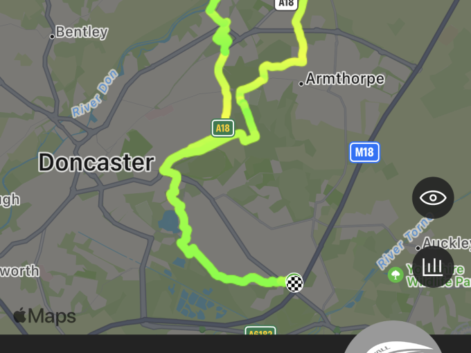 Starting from - At the bike stand on the paving between the Cheswold and the car park near the Vu Cinema at Lakeside. The postcode may not take you to exactly the right place. There is plenty of parking space which is free and there are no time restrictions. DN4 5QB