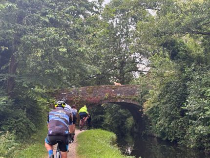 Mainly off road and traffic free, getting some shelter from the elements from the trees along the towpath.