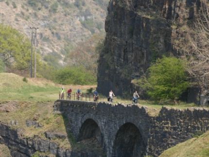 Large sections of the route are traffic free on cycle paths that follow old railway lines and canal towpaths. There are some short sections on back roads used only by local traffic. Short sections of the canal towpath can be muddy, especially after rain, therefore it's recommended that you have tyres with sufficient trad patterns to cope with a little mud.