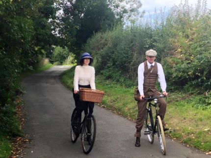From Evington Park House we cycle out to the countryside around Little Stretton to see the events of 5 July 1919. Bella Wright and Ronald Light are cyclling at the spot where the young woman was last seen alive. Join us and see the events of that fateful day. The police put out an appeal to anyone who saw a man on a green bicycle to come forward and help their enquiries. After a while, things went quiet for a few months until - by sheer luck - a mystery green bicycle would be found in the canal near Freemans Common... It was now 1920 and this little bit of luck would open the case wide again. ... On Monday the 23rd of February, 1920, Enoch Whitehouse, a canal bargeman, noticed a green bicycle caught up in his towrope...