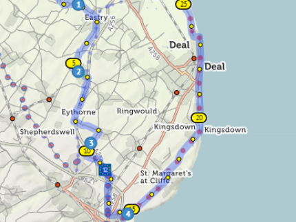 Our route takes us through the villages of Eastry and Whitfield as we head to Dover. We will then return via St Margaret's at Cliff to Kingsdown, Walmer and Sandwich. From St Margaret's you will get to enjoy a long downhill section - your reward for the hard work to get there.